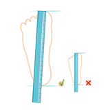 Agora pega na régua e mede desde o centro do calcanhar até ao dedo maior. Mede também a largura máxima do pé.